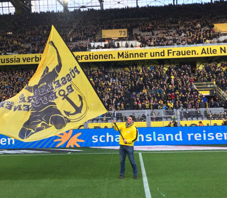 Unsere Vereinsfahne zum ersten mal auf dem Platz